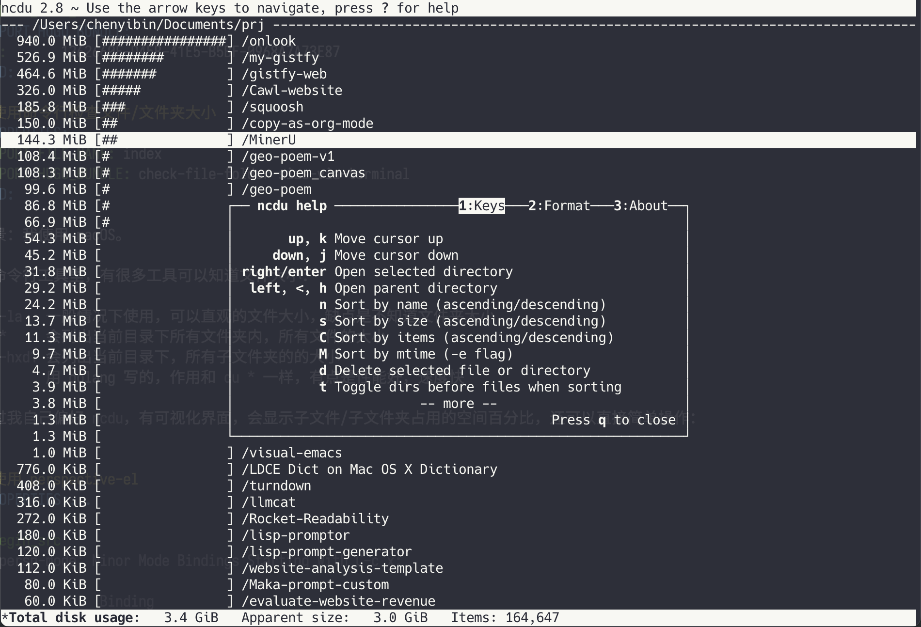不过我自己偏好 ncdu ,有可视化界面,会显示子文件/子文件夹占用的空间百分比,还可以直接简单操作: